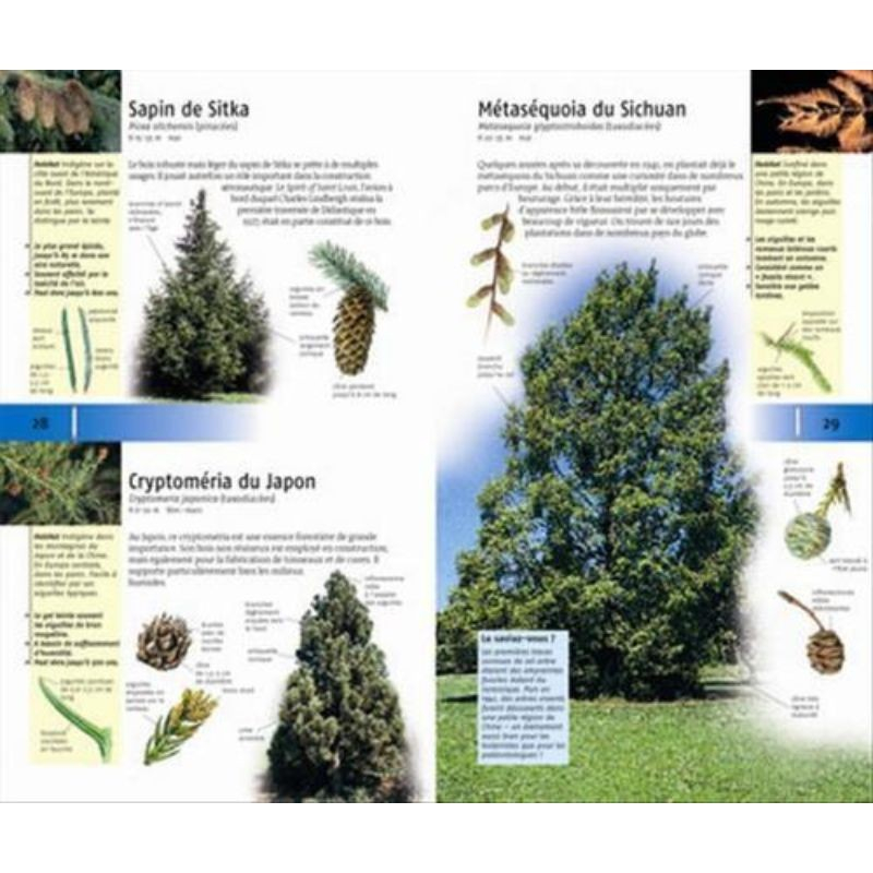 - Un classement par grandes catégories (conifères, feuillus, arbustes, lianes), facilement repérable grâce à un code couleur.