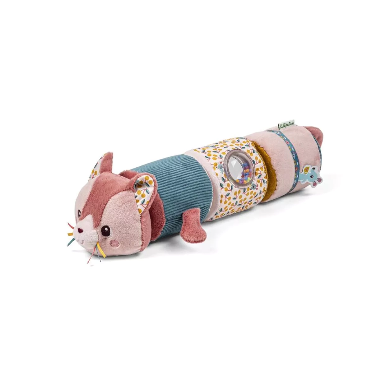 Stimulez les sens et la motricité de votre bébé avec le rouleau sonore Jeanne le chat de Lilliputiens, un jouet d'éveil 4 en 1 aux sons et textures variés.