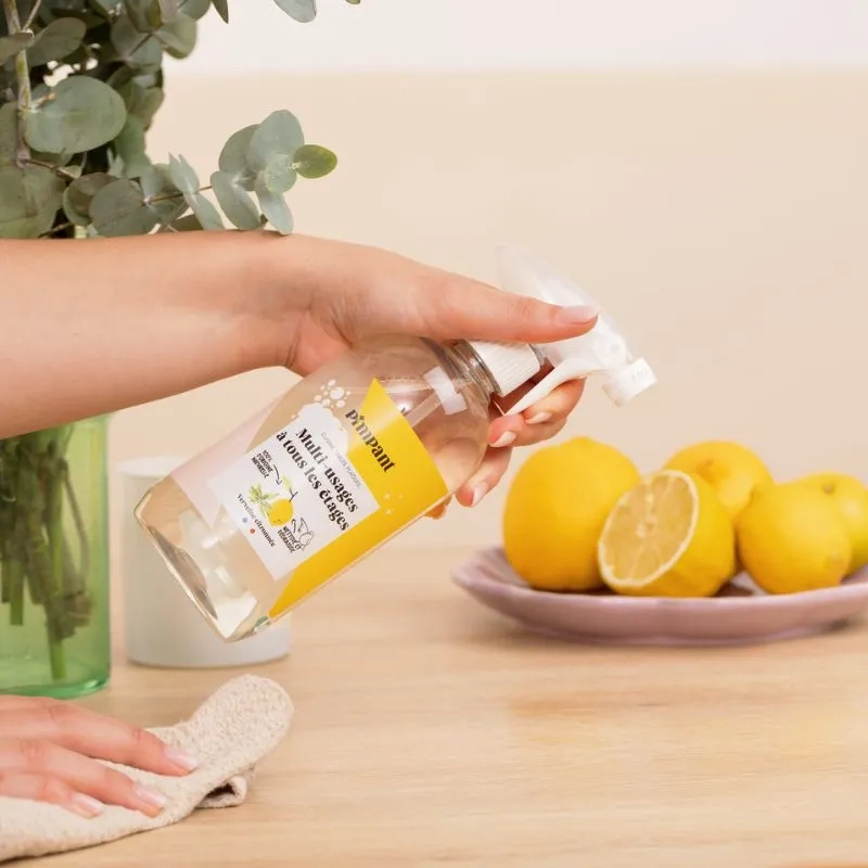 La bouteille spray multi-usages rechargeable de 500 ml de Pimpant est l'outil idéal pour un nettoyage écologique et efficace de toutes vos surfaces. Réutilisable et fabriquée en plastique recyclable, elle s'utilise avec les recharges Pimpant pour une maison propre et respectueuse de l'environnement.