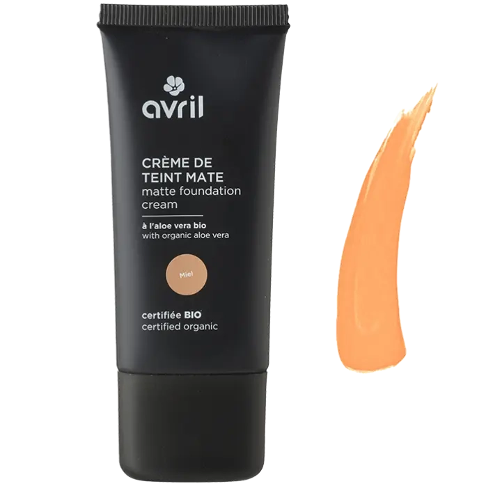 Affinez votre grain de peau et cachez vos petites imperfections grâce à la crème de teint mate Miel certifiée bio Avril. Sa texture crémeuse est facile à appliquer et laisse un fini mat velours qui tient 8h !