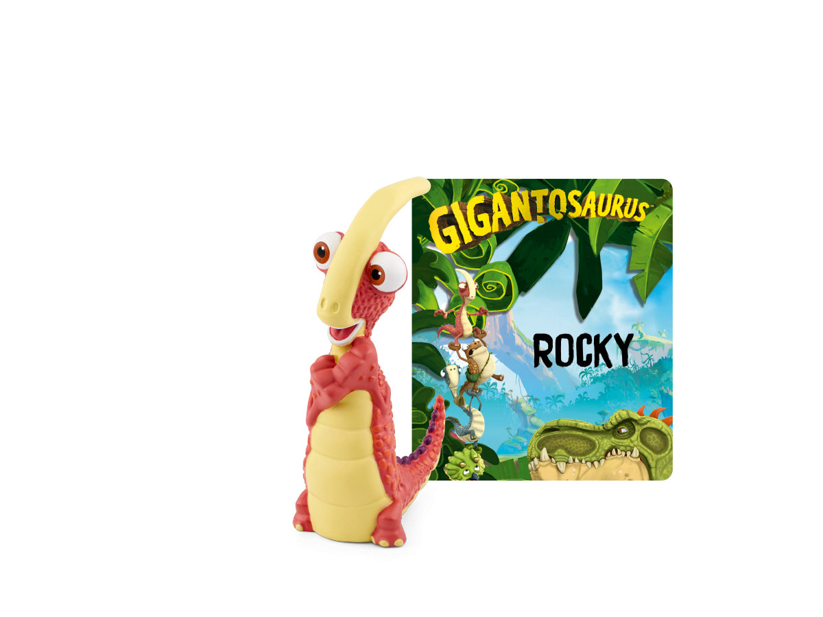 Découvrez la figurine audio Tonies Gigantosaurus Rocky, idéale pour les enfants dès 4 ans. Plongez dans l'univers de Crétacia avec Rocky et ses amis à travers 4 histoires captivantes.