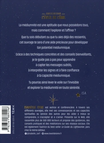 Isabelle Cerf est reconnue pour sa capacité à rendre la spiritualité et la médiumnité accessibles au plus grand nombre. Dans cet ouvrage, elle transmet son expérience avec clarté, rigueur et simplicité, permettant à chacun d’explorer son potentiel médiumnique sans crainte ni confusion.
