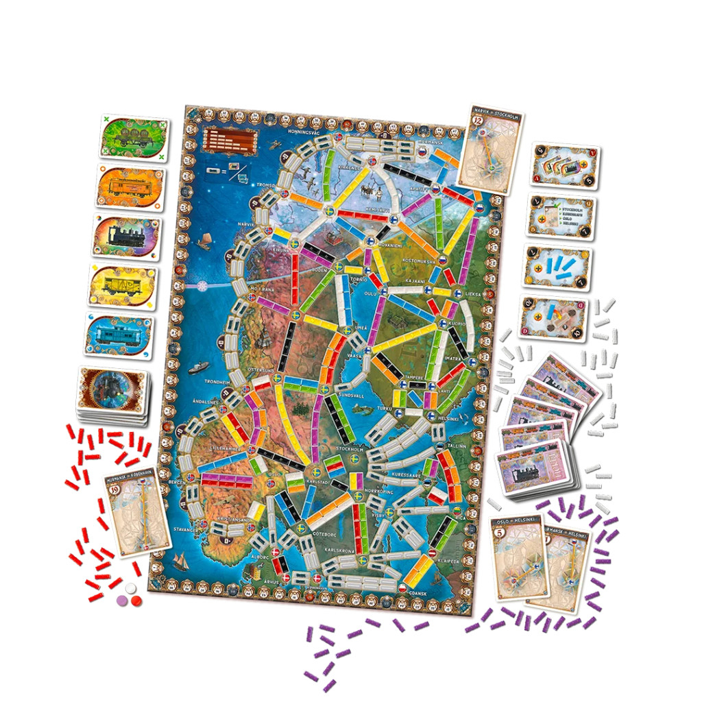 Embarquez pour une aventure ferroviaire à travers les paysages enchanteurs de la Scandinavie avec Les Aventuriers du Rail - Aurores Boréales. Ce jeu de société captivant vous invite à traverser la Norvège, la Suède, le Danemark et la Finlande, reliant des villes emblématiques tout en admirant des fjords majestueux et des forêts denses.