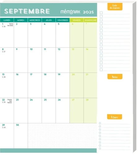 Memoniak Pad aimanté calendrier mensuel. 12 mois : septembre 2025 - août 2026 Edition 2025 - 2026