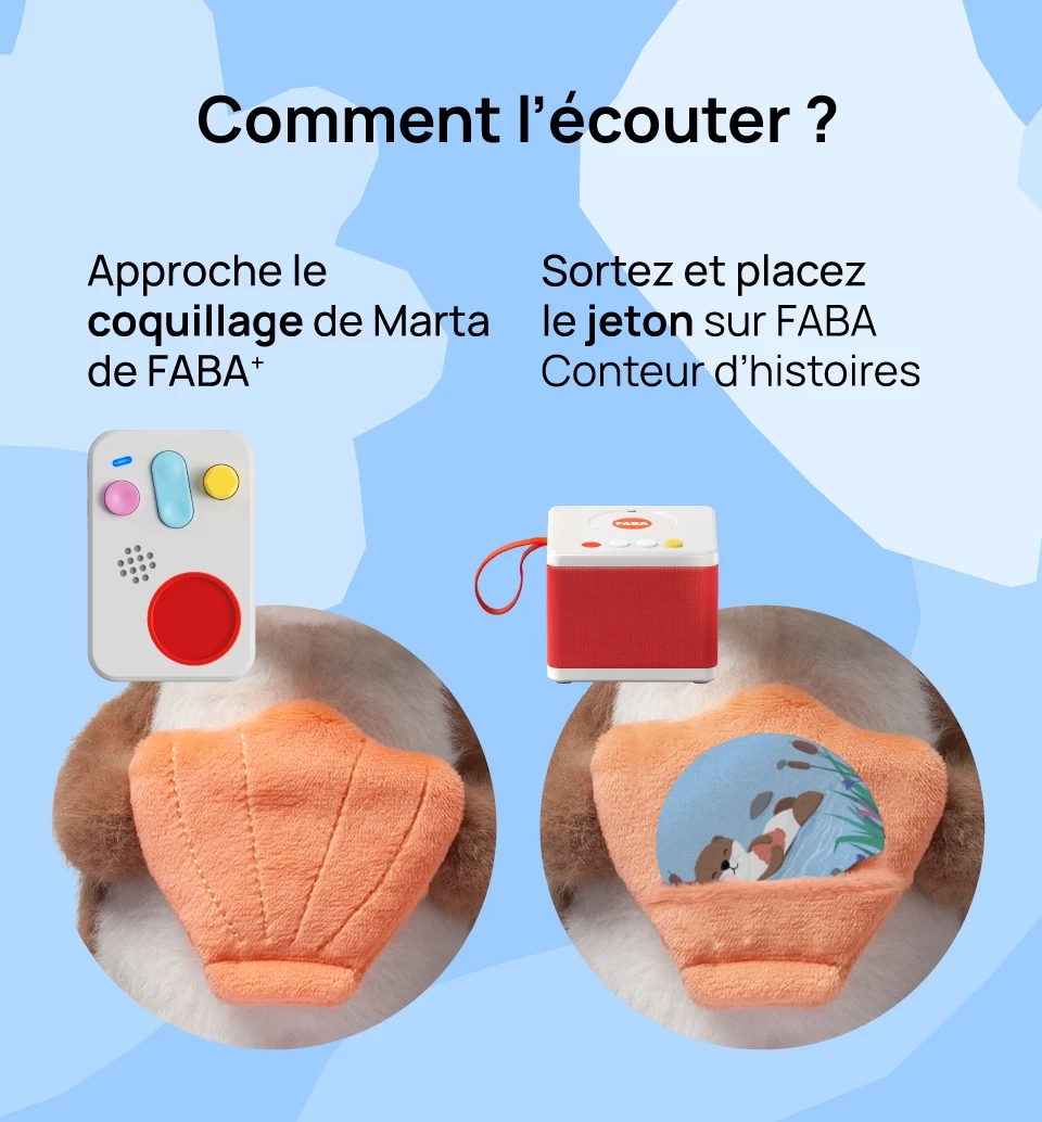 Offrez à votre enfant un compagnon doux et réconfortant avec la peluche sonore 'Câlins complices avec Marta' de FABA. Cette adorable loutre est accompagnée de 8 histoires courtes en rimes, spécialement conçues en collaboration avec une pédagogue pour aborder avec délicatesse le thème de la séparation parentale. Chaque récit est enrichi de mélodies instrumentales et de sons de la nature, créant une ambiance apaisante propice aux moments de calme et de partage.