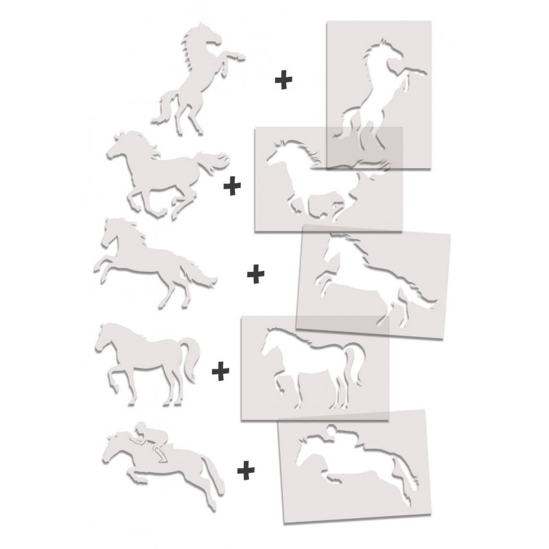 Offrez à votre enfant une immersion dans l'univers équestre avec les pochoirs artistiques géants "Les chevaux" de Créa Lign'. Cet ensemble comprend :