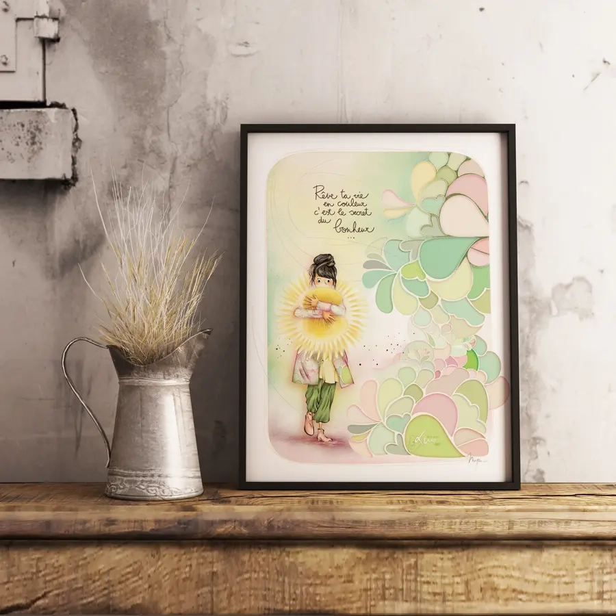 Poster Mon Amie Luce - Édition limitée 30 x 40 cm " Rêve ta vie en couleur c'est le secret du bonheur "