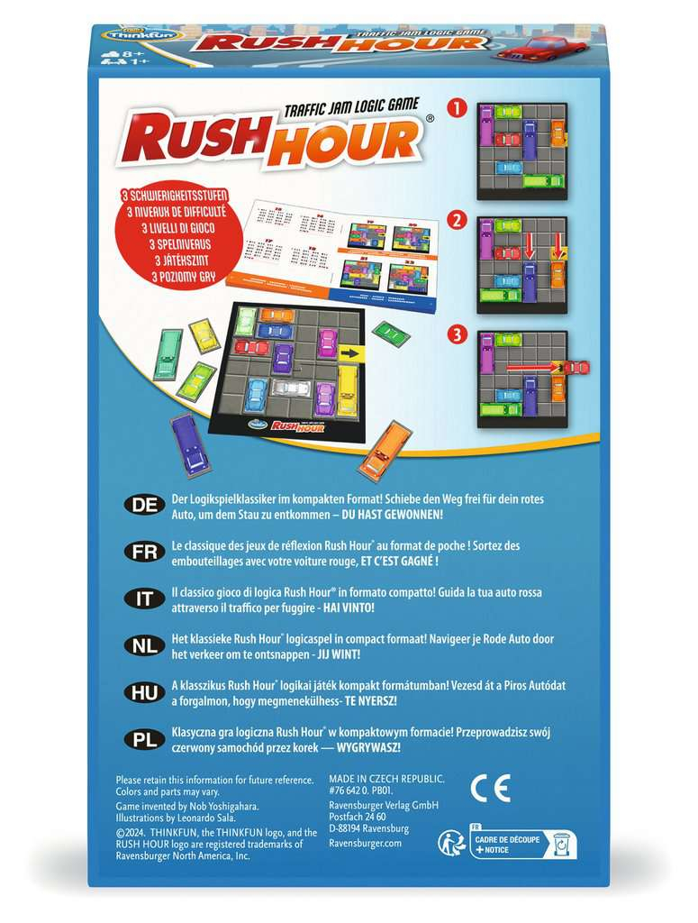 Rush Hour Bring-Along est la version portable du jeu de logique classique de Ravensburger, offrant 30 défis captivants pour libérer la voiture rouge des embouteillages. Idéal pour les joueurs dès 8 ans, ce jeu compact est parfait pour les voyages.
