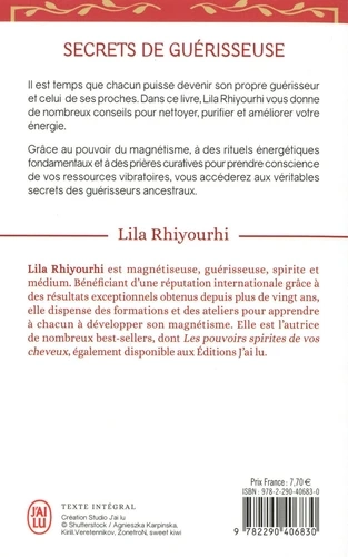 Secrets de guérisseuse : Renouez avec les pouvoirs extraordinaires de votre énergie de Lila Rhiyourhi est un guide pratique pour devenir votre propre guérisseur. Apprenez à prendre soin de vos énergies, à guérir et soulager, et à traiter les maux quotidiens grâce au magnétisme, aux rituels énergétiques et aux prières curatives. Publié en 2020 aux Éditions Leduc.s, cet ouvrage de 277 pages est une ressource précieuse pour exploiter pleinement votre potentiel énergétique.