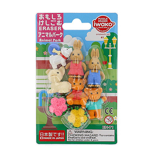 Set de gommes Iwako 'Les animaux du parc' : des gommes japonaises en forme d'animaux du parc, ludiques et fonctionnelles, idéales pour les enfants dès 3 ans.